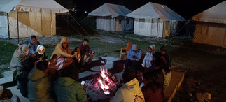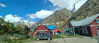 As the sun went down over the snow-clad mountain tops and temperature dropped to near Zero, the bonfire lit up and people staying in our campsite started gathering. Enjoying the bonfire on a chilling night at the camping site beside a lively mountain river amidst prayer flags fluttering by the chilling wind descending from the snow capped mountain peaks and sharing laughter and stories and connecting with other travelers, who quickly felt like friends, made the evening truly special. The crackling fire, the gentle murmur of the stream, and the majestic peaks surrounding the campsite created a serene yet exhilarating atmosphere. As the night deepened, our conversations turned to the adventures awaiting us in coming days: the formidable Baralacha Pass and Shinkula Pass at 17000 feets and the spiritual allure of Gonbo Rangjon. The excitement of those higher climbs filled us with anticipation for the journeys ahead.